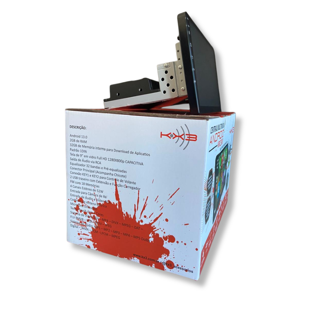 Central Multimídia 9″ com Android 13.0 — Encaixe 1 Din, Instalação Sem Adaptação