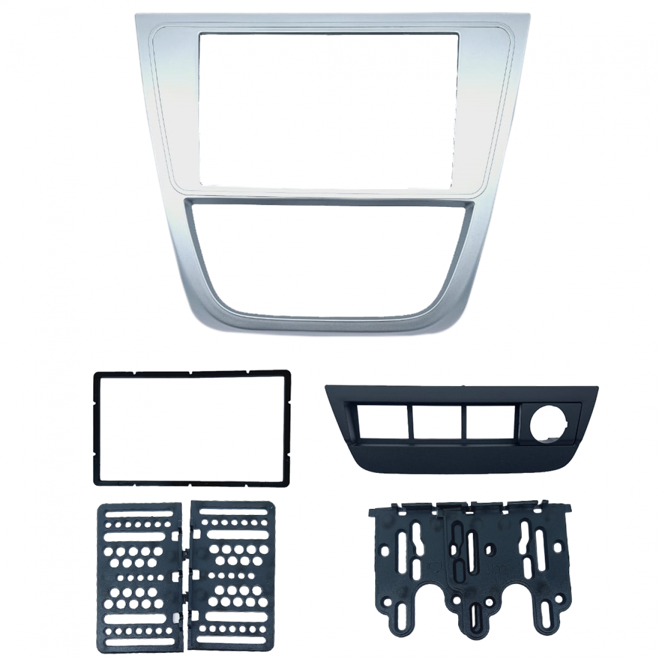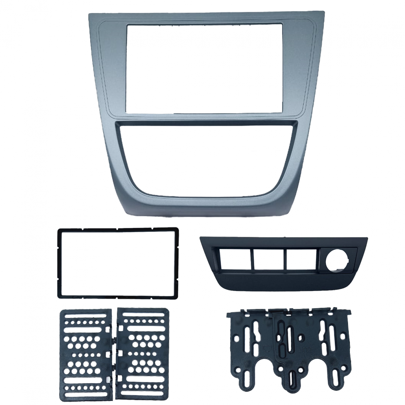 Cód: 4284 – Moldura 6.8″ e 7″ Gol/ Saveiro/ Voyage G5 c/ Suporte 4 botões Cor: Prata